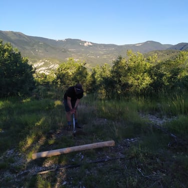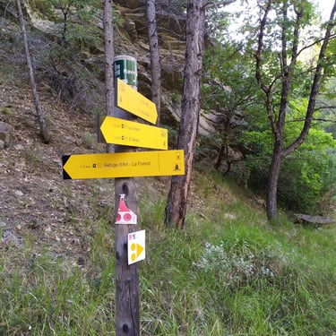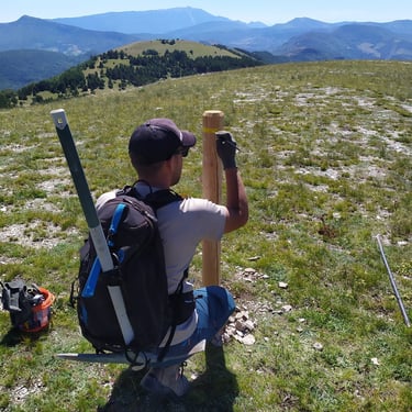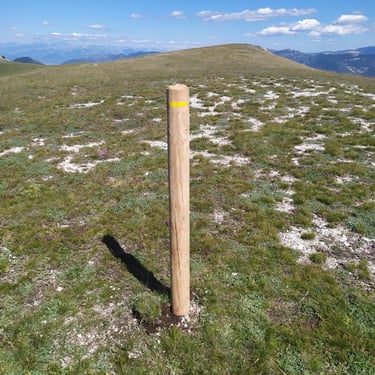 Juillet 2020. Prestation de pose de balisage peinture, pose de plaquette VTT et pose de jalon.