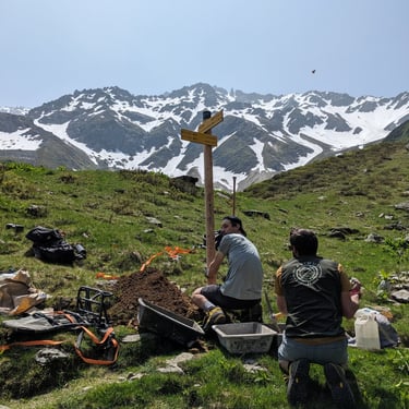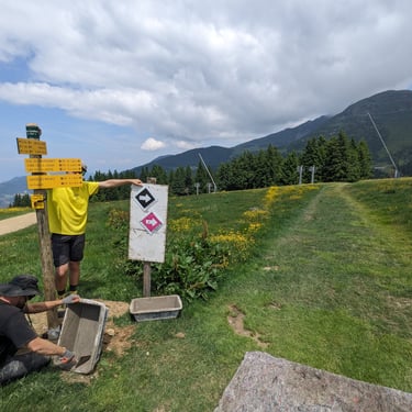 Juin 2025. Pose de jalons et de poteaux signalétique dans la chaîne de Belledonne