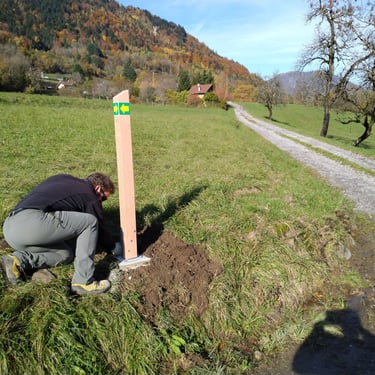Octobre 2025. Pose de signalétique et balisage pour les boucles des coteaux de Monnaz,