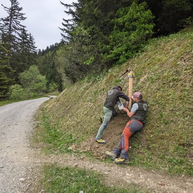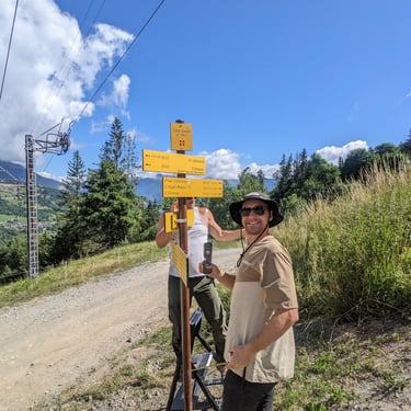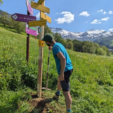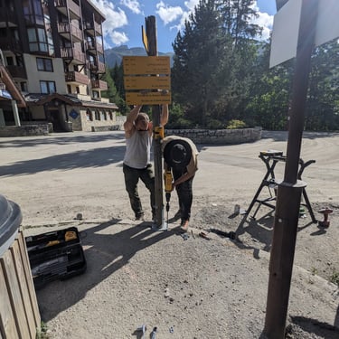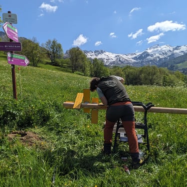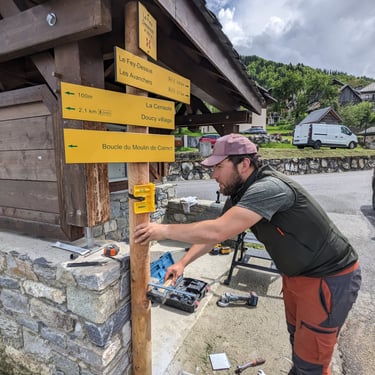 Mai et juillet 2025. Pose de la signalétique randonnée en lien avec le plan de jalonnement